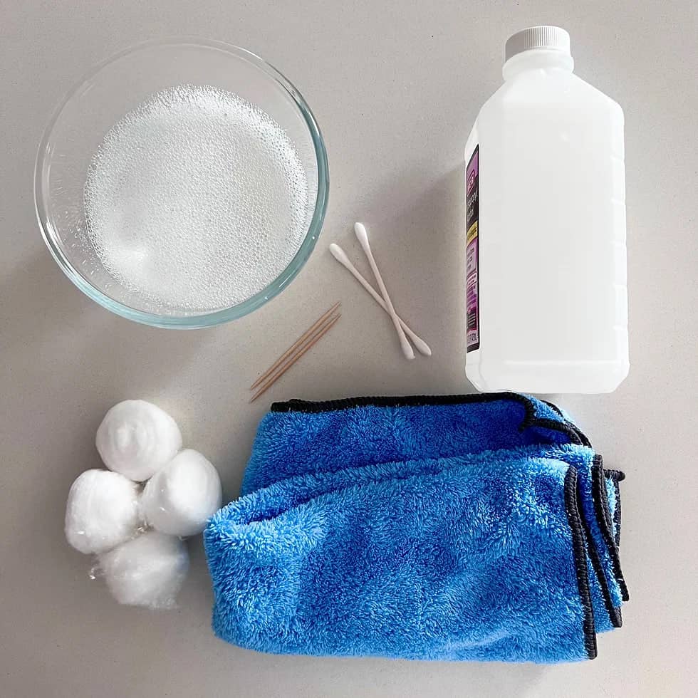 For stubborn residue, use a cotton ball soaked in rubbing alcohol to wipe and rinse the dish clean. This also helps in removing any greasy film.